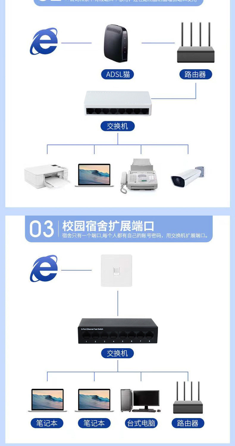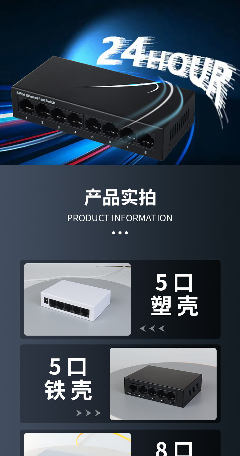 千兆百兆5/8口网络交换机以太网集线分流扩展端口 塑壳switch批发