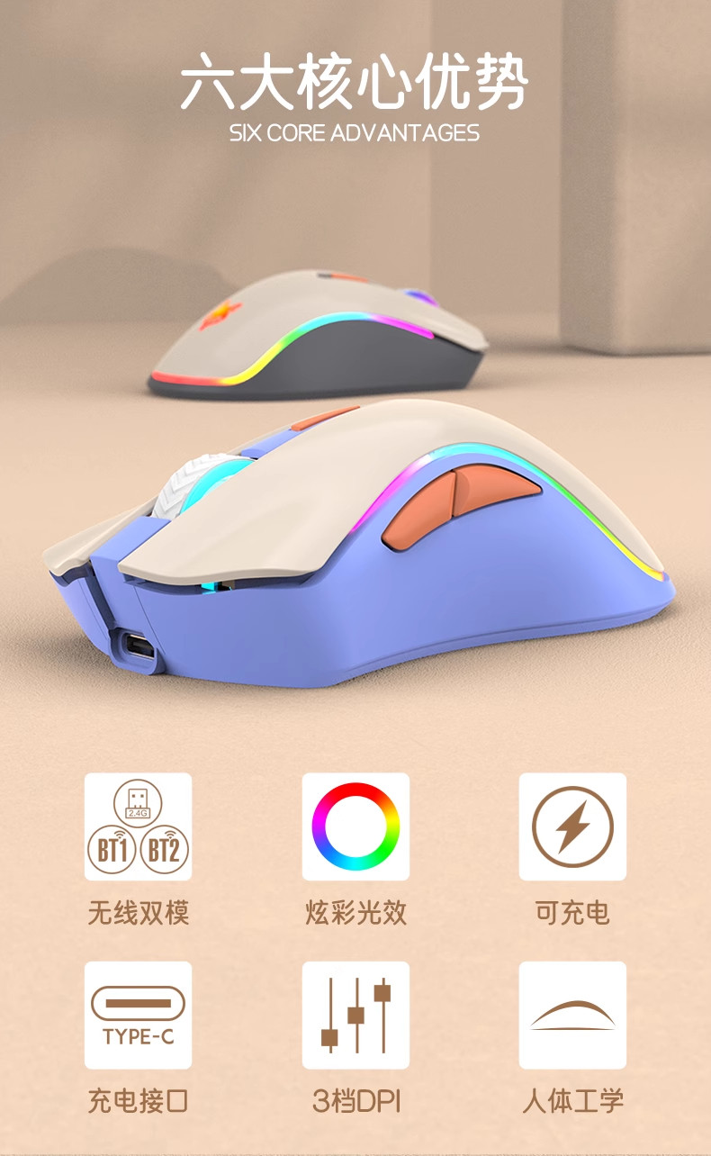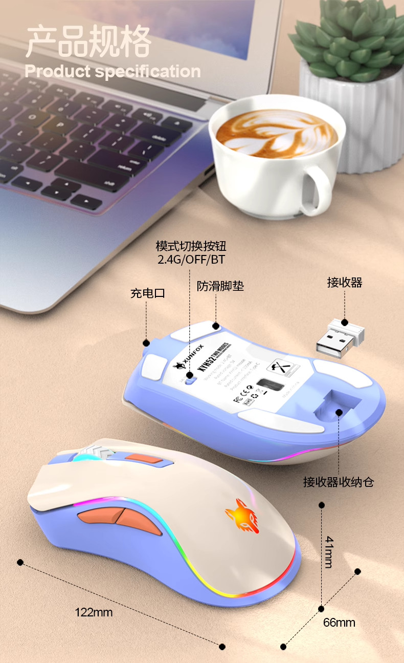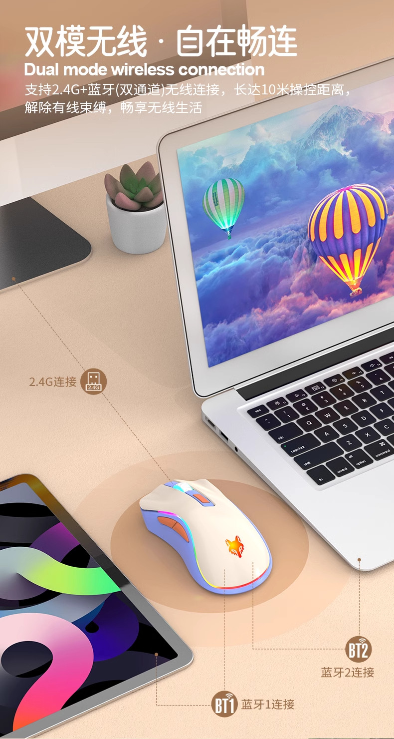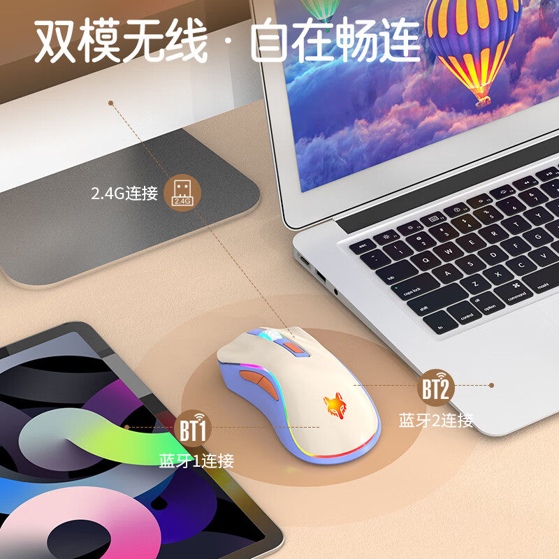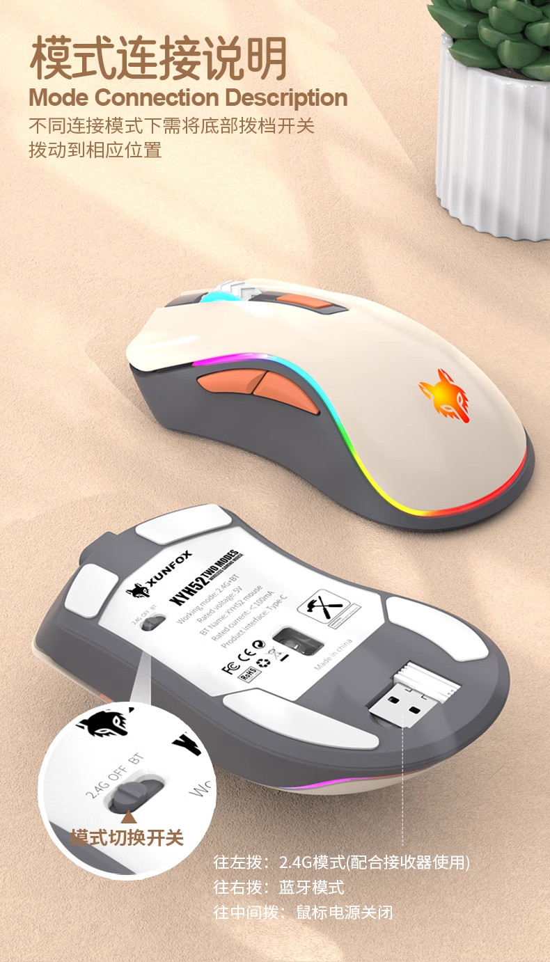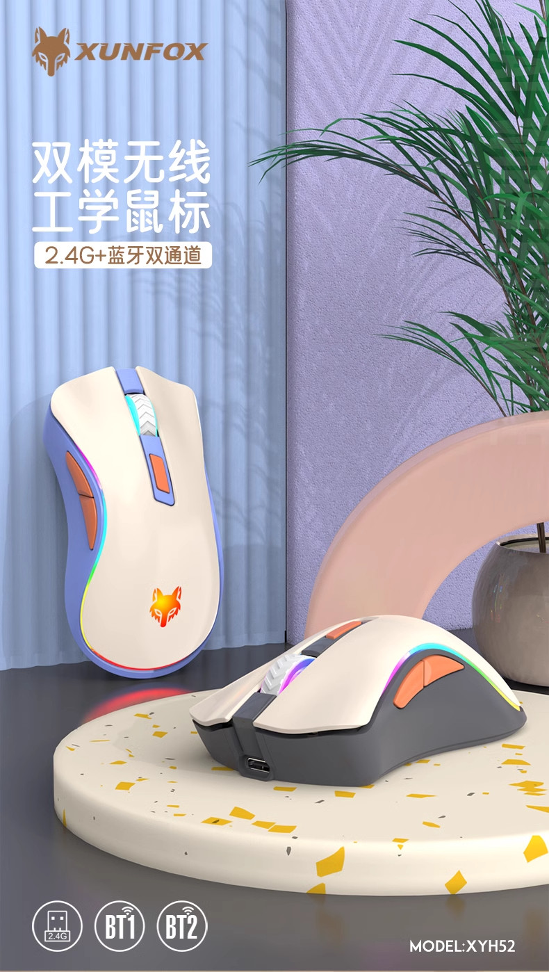 炫银狐XYH52无线2.4G蓝牙双模鼠标电脑可充电款静音办公笔记本