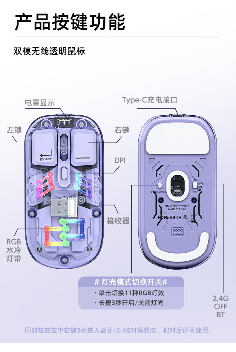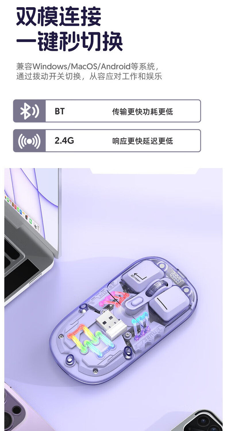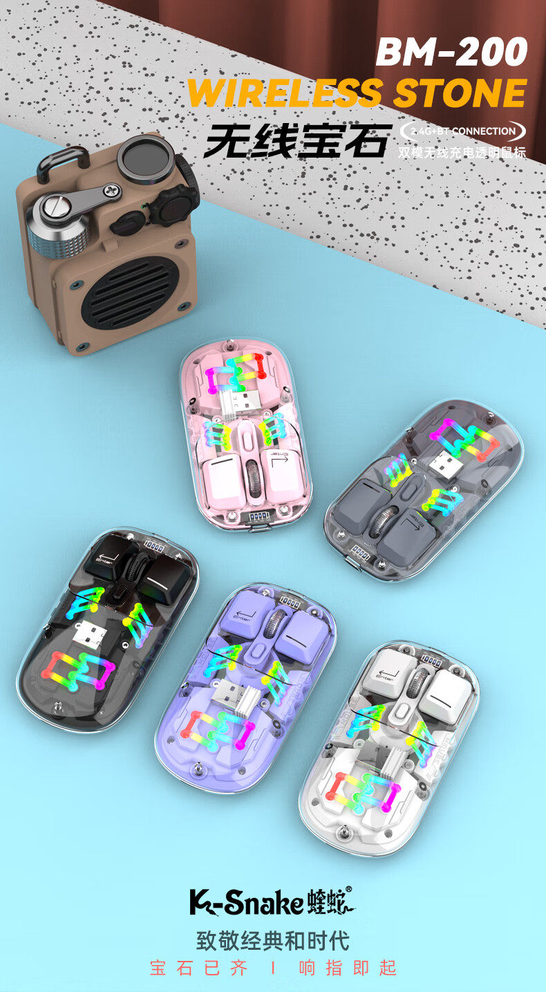 蝰蛇BM200无线双模蓝牙鼠标可充电办公商务台式笔记本电脑平板