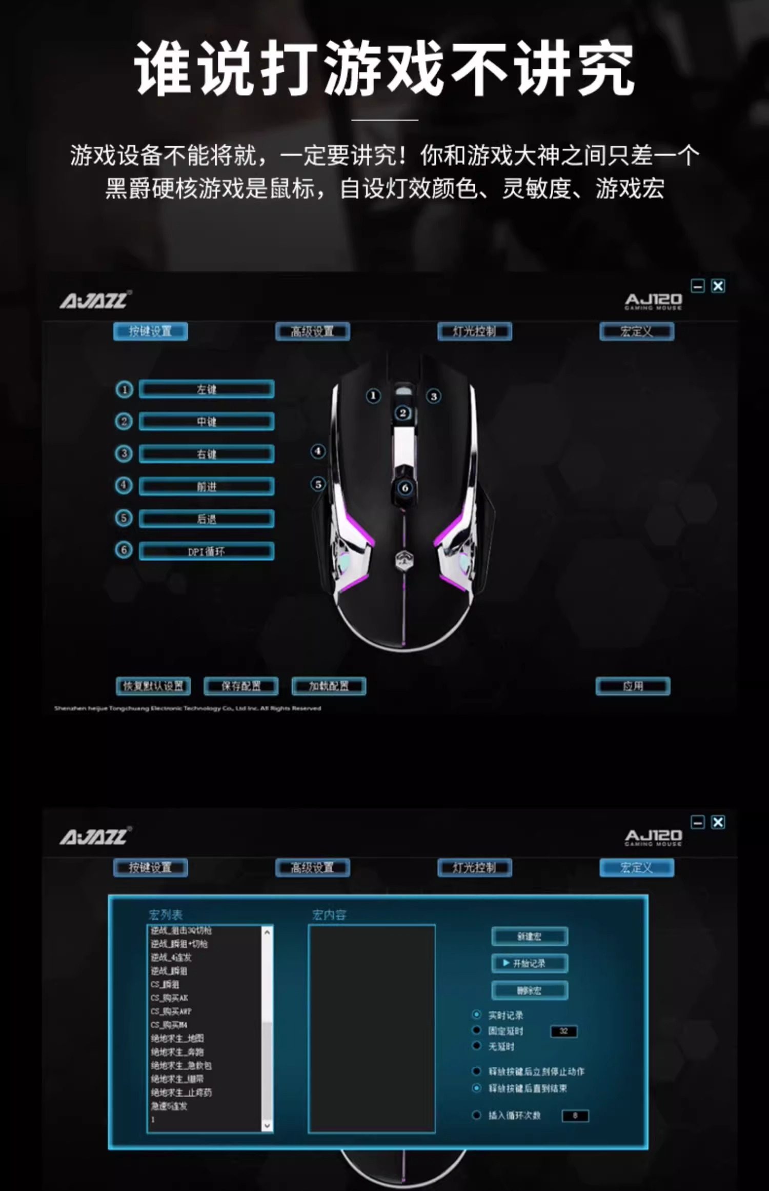 黑爵Aj120有线电竞游戏鼠标专用宏驱动笔记本台式电脑办公打字