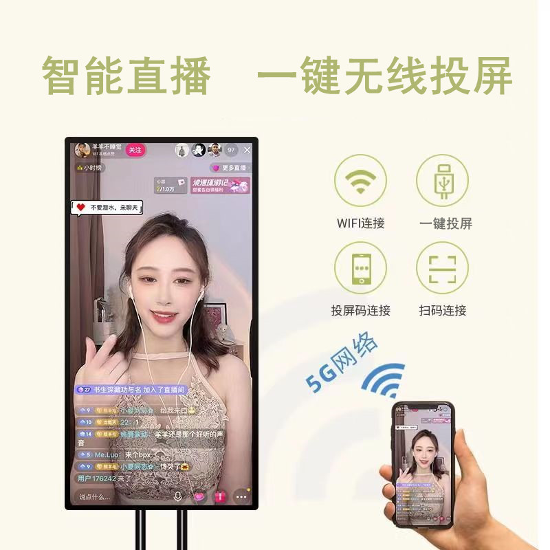 手机直播投屏显示器抖音主播带货移动广告一体机智能大屏教学触摸